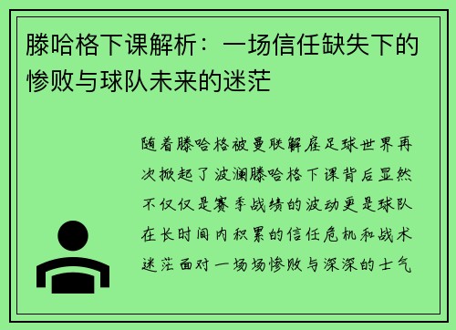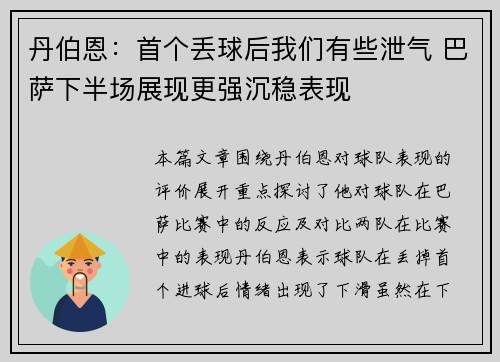 本文将深入分析戴维森在比赛中的总结,探讨其如何在上半场掌控局面,然而在下半场因急躁心态未能维持优势的原因。从比赛的战术执行、球员心理变化、教练的应变能力以及场上压力四个方面进行详细分析。文章旨在通过这些方面,帮助读者更好地理解比赛过程中各个细节对整体表现的影响,并提供对比赛总结的有价值见解。1、战术执行的得失戴维森在比赛的上半场,凭借出色的战术布置和有效的执行,迅速掌控了比赛的节奏。他的球队在进攻...
