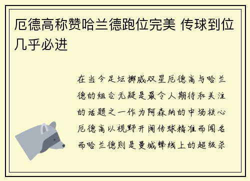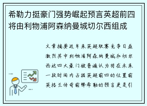 本篇文章将深入探讨罗尔费斯坚称埃切韦里不会去参加U20世界杯,而是选择留在俱乐部担任核心力量的决定。通过四个方面的详细阐述,我们将分析这一决定的背景、原因以及它对埃切韦里的职业生涯及俱乐部的影响。首先,我们将探讨俱乐部与国家队之间的关系,分析球员是否应为国家队牺牲个人职业发展的矛盾。接着,我们会分析罗尔费斯对于埃切韦里未来发展的规划,如何看待他在俱乐部的重要性。然后,我们将从球员的角度分析埃切韦里...